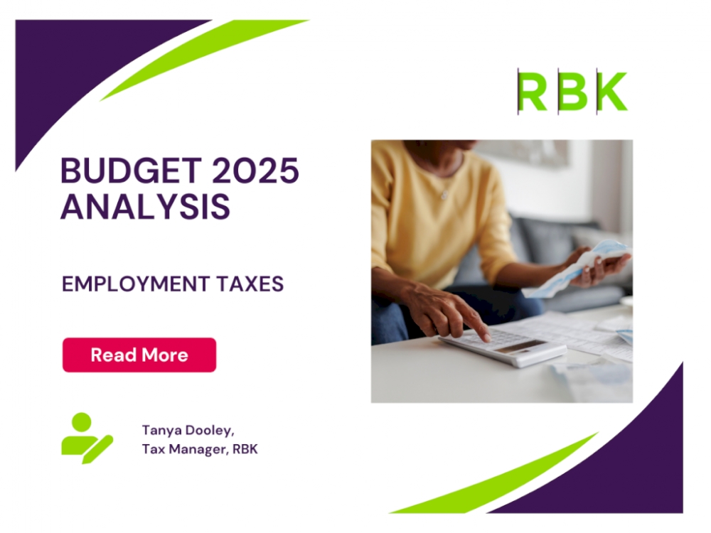 RBK will be holding its annual Breakfast Budget Briefing as a hybrid event in person at the Athlone Springs Hotel in Athlone and streaming live online on Wednesday, 2 nd October. Mike Scanlan, Tax Director, RBK will be analysing the tax measures announced in Budget 2025 and David McNamara, Chief Economist with AIB will look at the economic outlook.