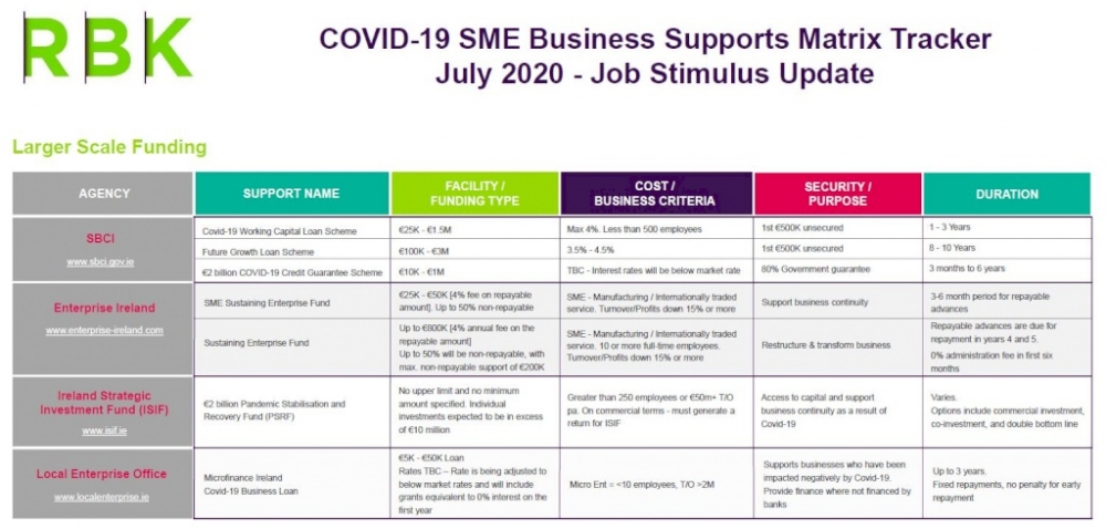 Click below to view a summary of the key supports currently available and the main elements of each. As ever, we are available to assist in applying for and availing of these.