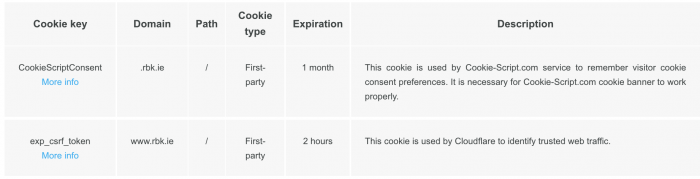 On your first visit to this website, you may be greeted by a pop-up banner message that provides information about cookie use. We’ll store a cookie when you click the accept button so that your computer knows you’ve seen it and will stop showing it. This RBK website uses cookies in several places. We’ve listed each of them below, with more details about why we use them and how long they last. “End of session” means the cookie is temporary and will be removed each time you close your browser. Some of the cookies we use are removed at the end of the browser session, i.e. when you close your browser (these are called “session cookies”). Other cookies remain on your device and allow us to recognise your browser during your next visit (“persistent cookies”). We use Google Analytics to collect information about how people use this site and gain a better understand of their expectations. This allows us to constantly improve the site.